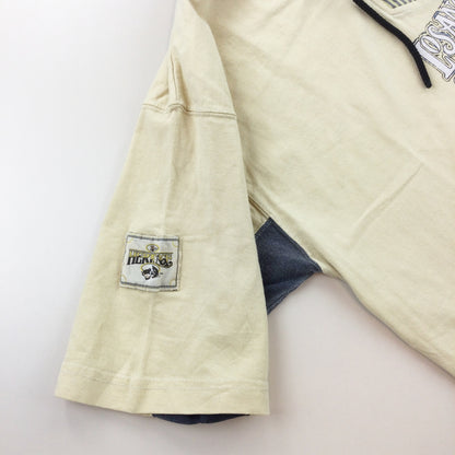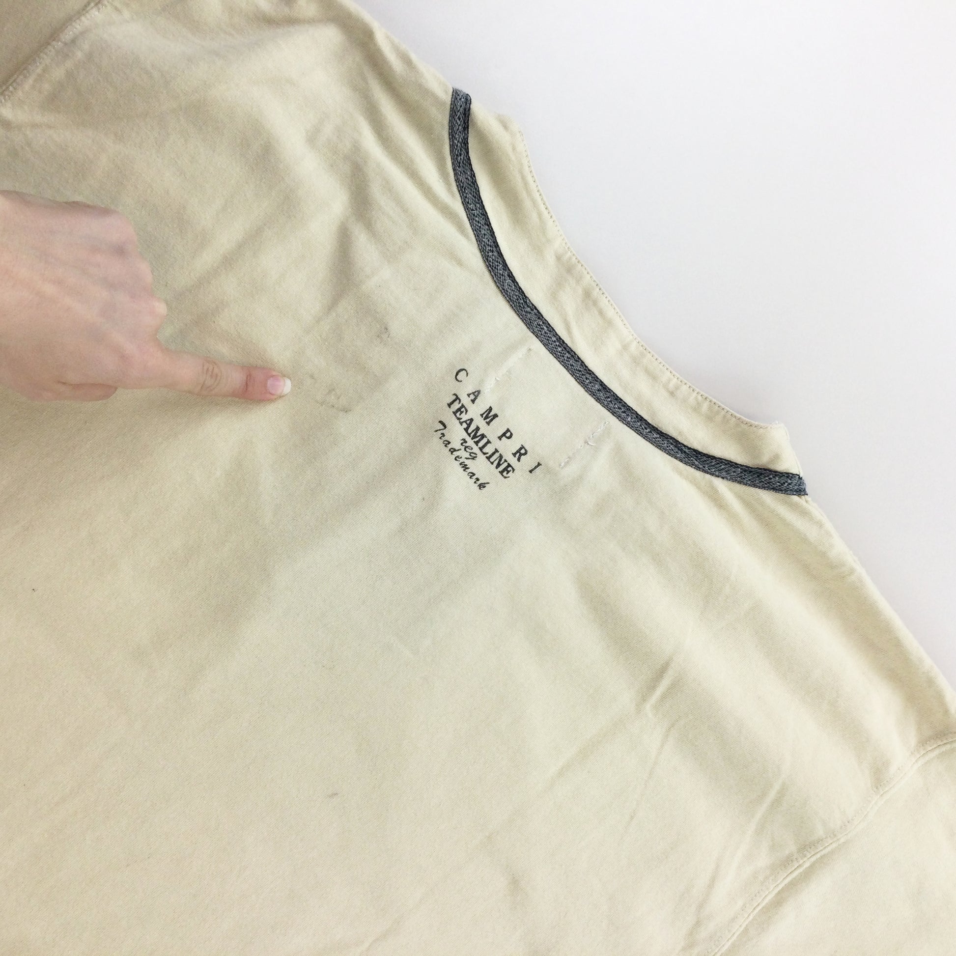 Infos: Logo auf der Vorderseite, auf der Rückseite und auf den Ärmeln gedruckt. beige Farbe.
