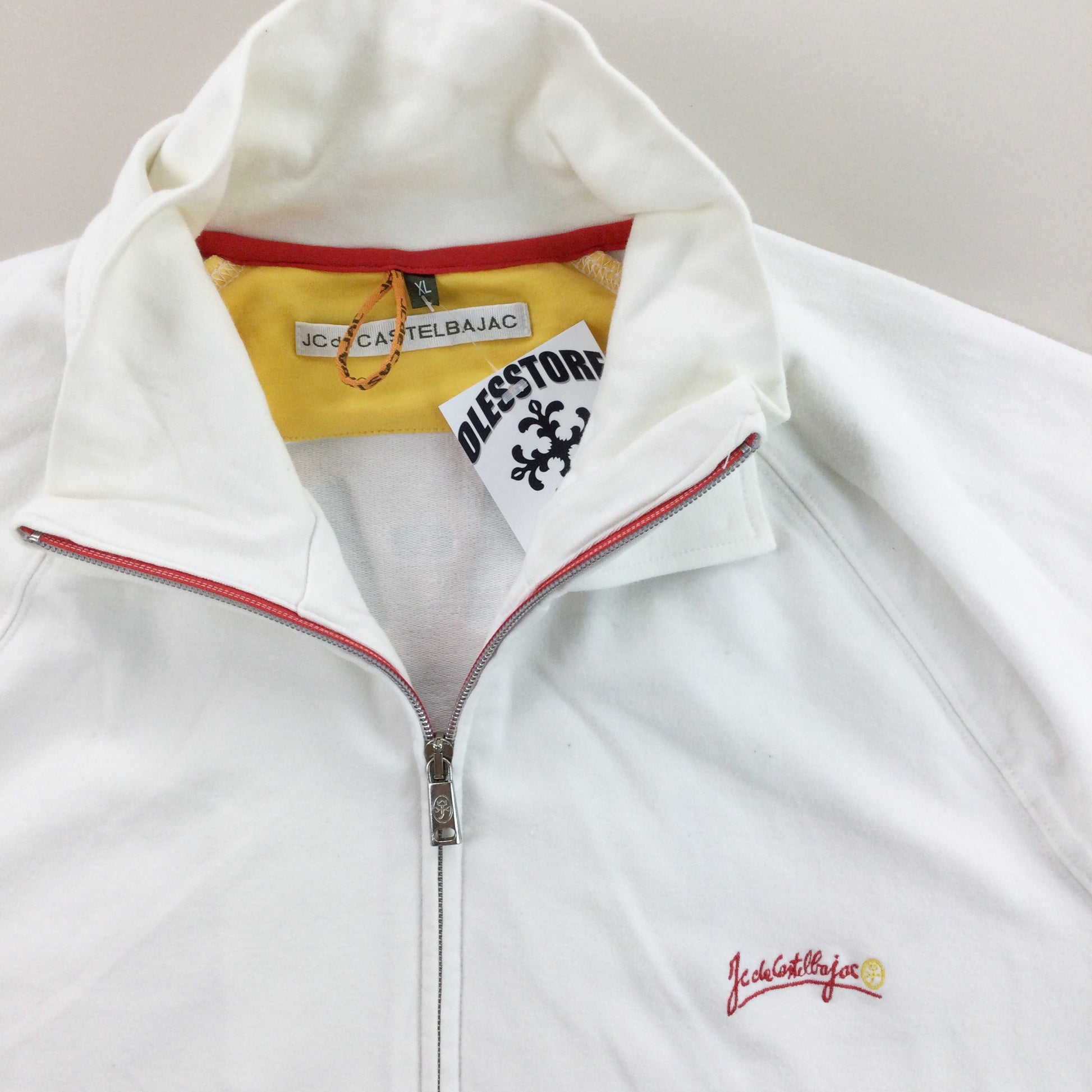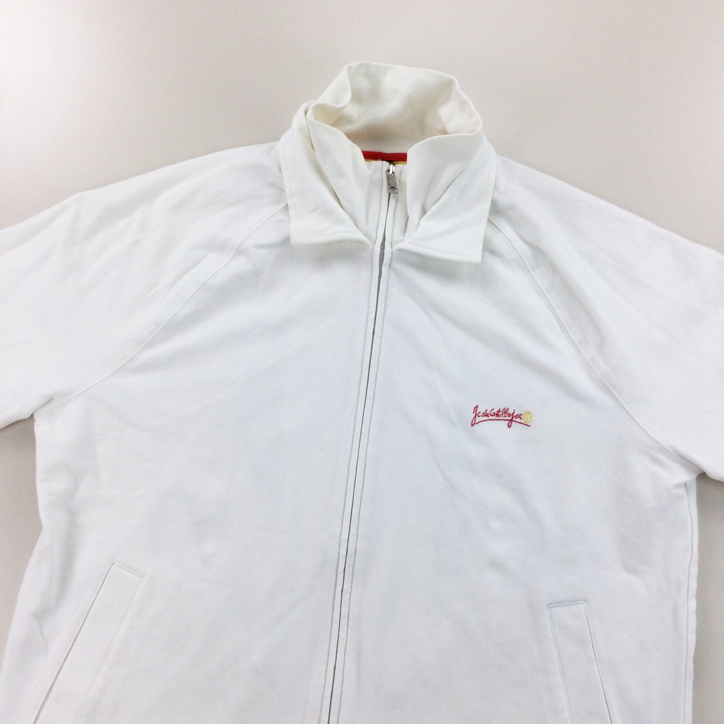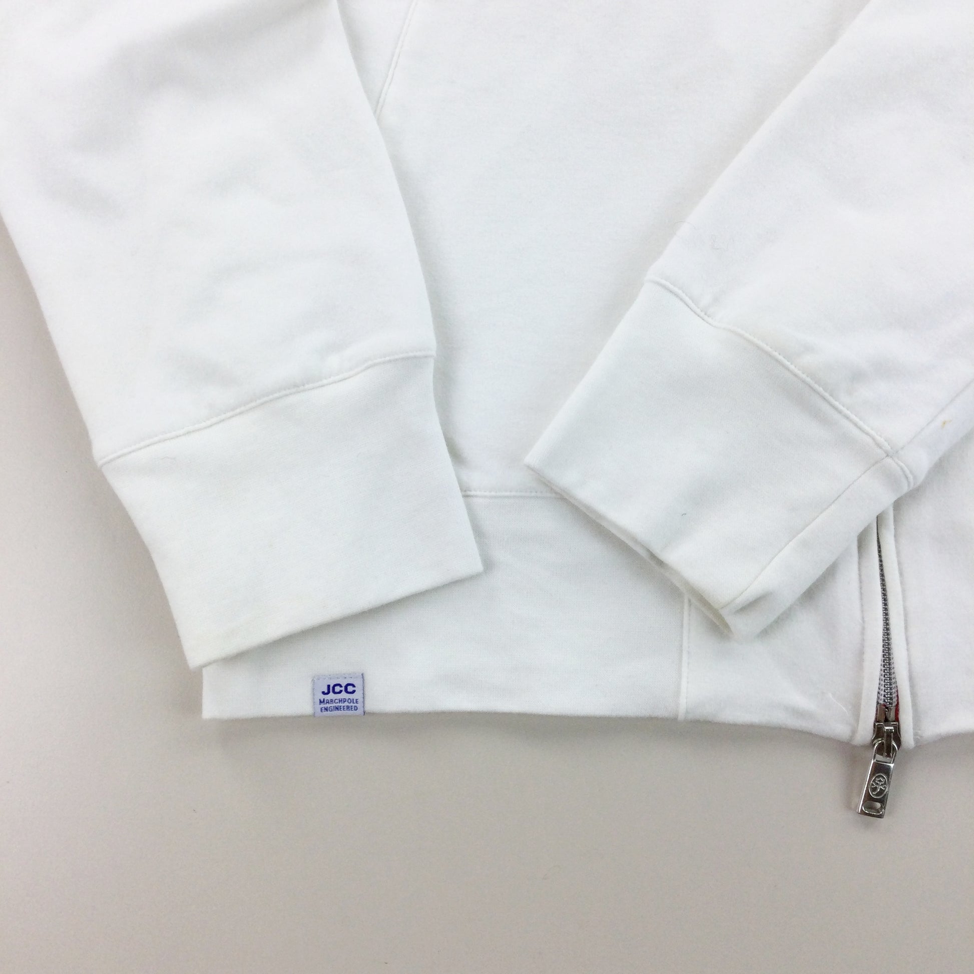 Infos: Logo auf Vorder- und Rückseite gestickt. weiße Farbe. durchgehender Reißverschluss.