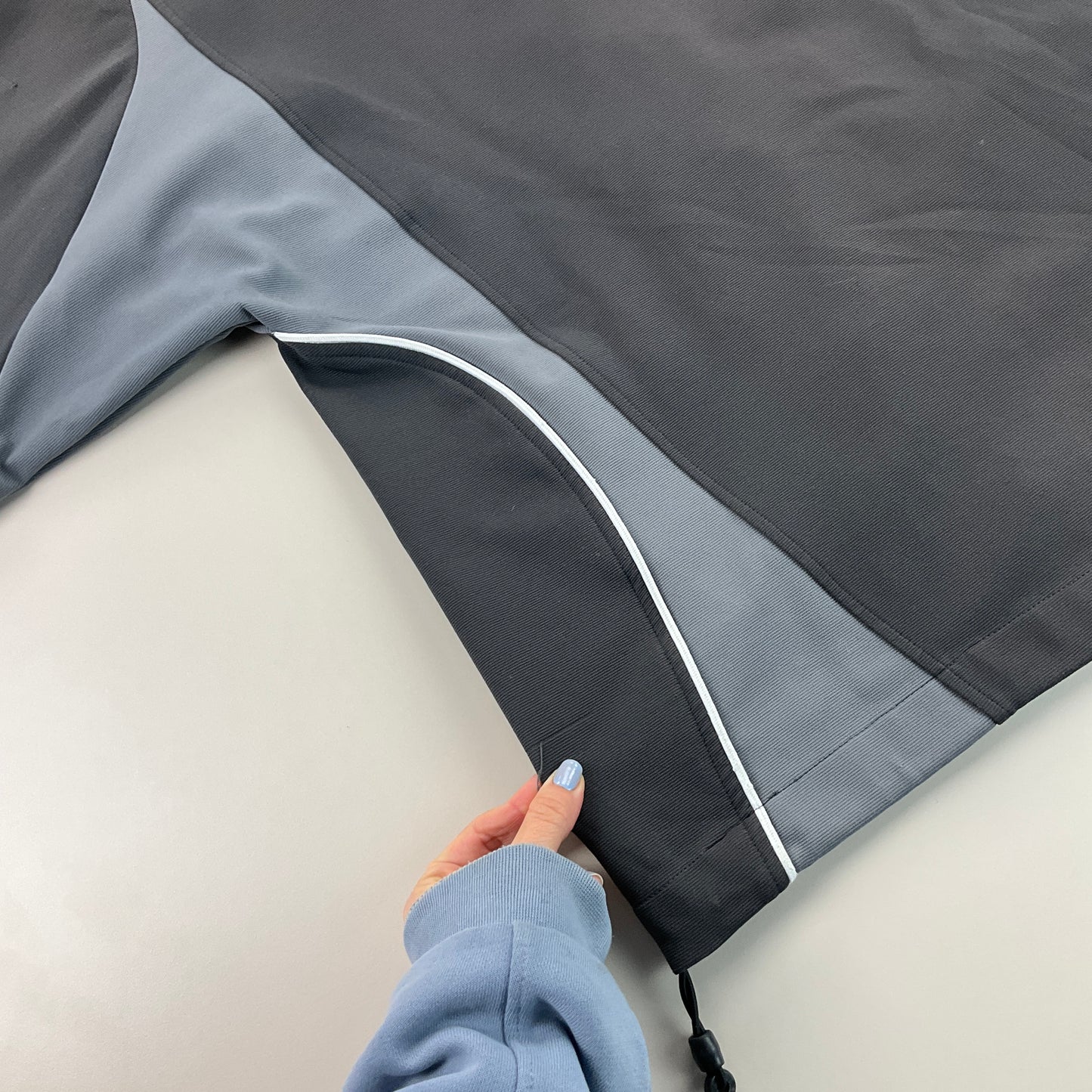 Infos: schwarze und graue Farbe. Logo auf Jacke und Hose gestickt.