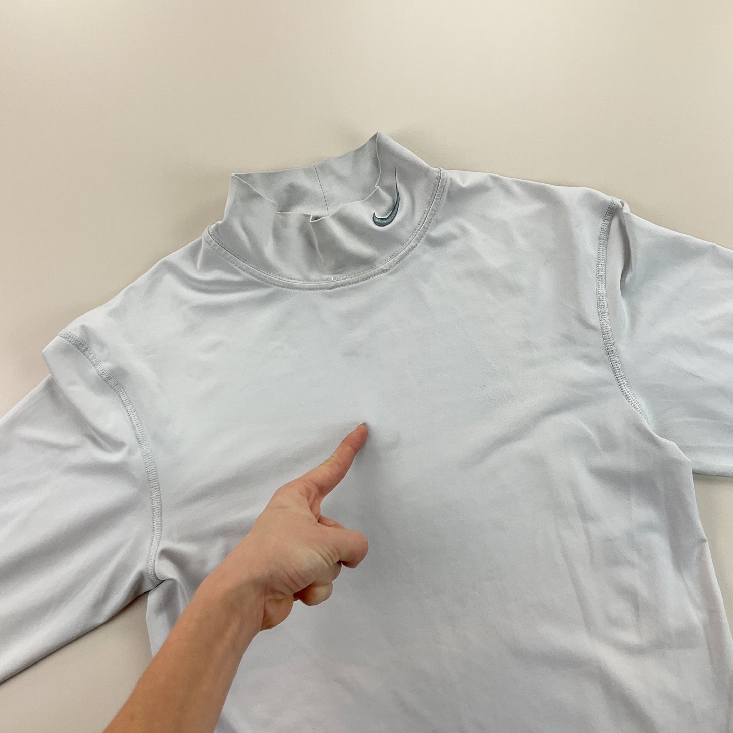 Infos: Logo gestickt am Kragen. hellgraue Farbe.