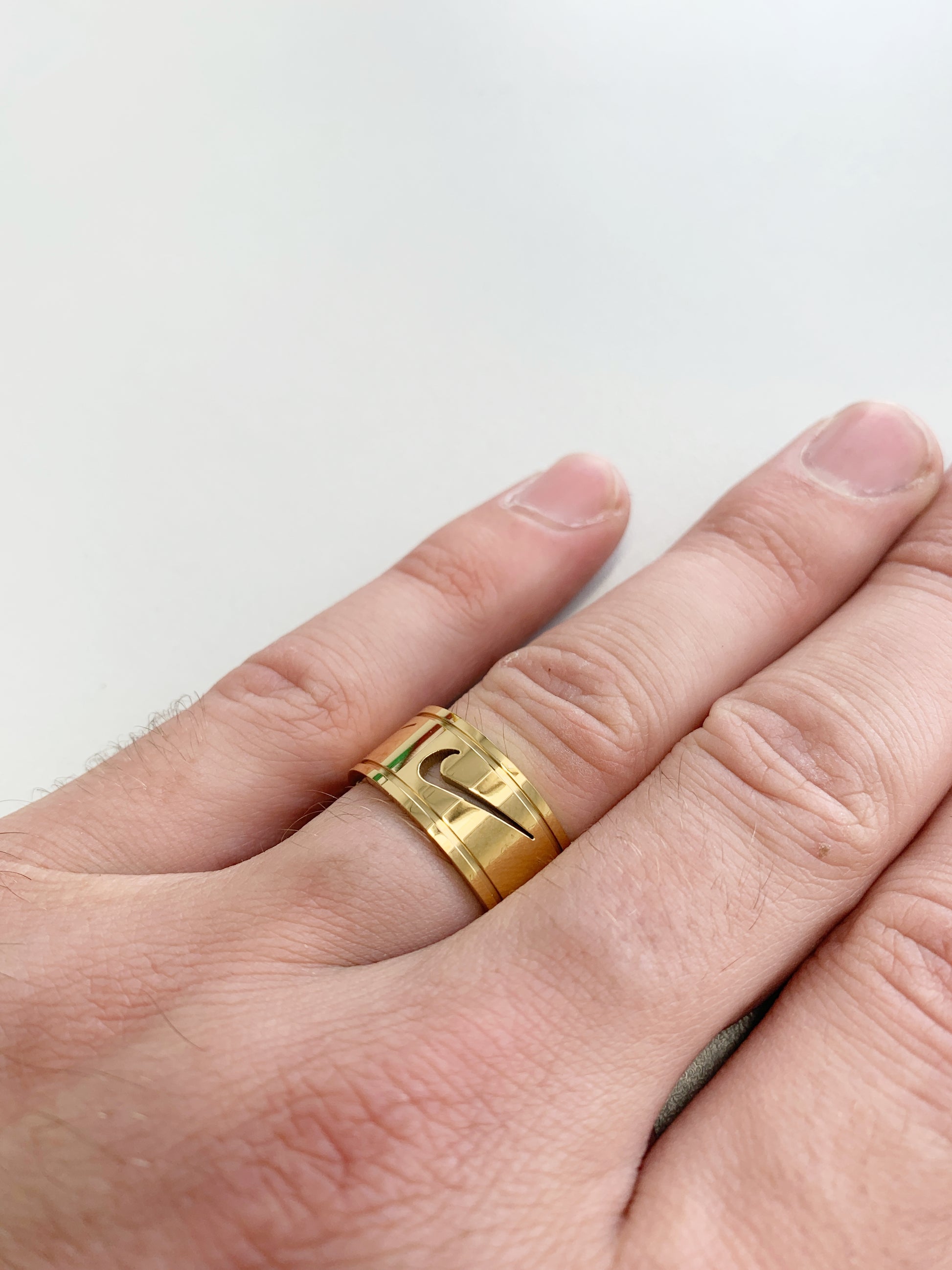 Infos: Goldring mit ausgeschnittenem Swoosh-Logo, kein offizieller Nike