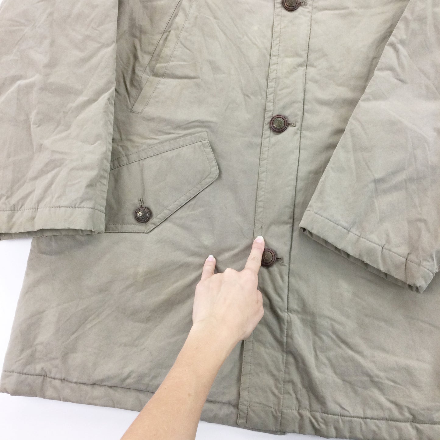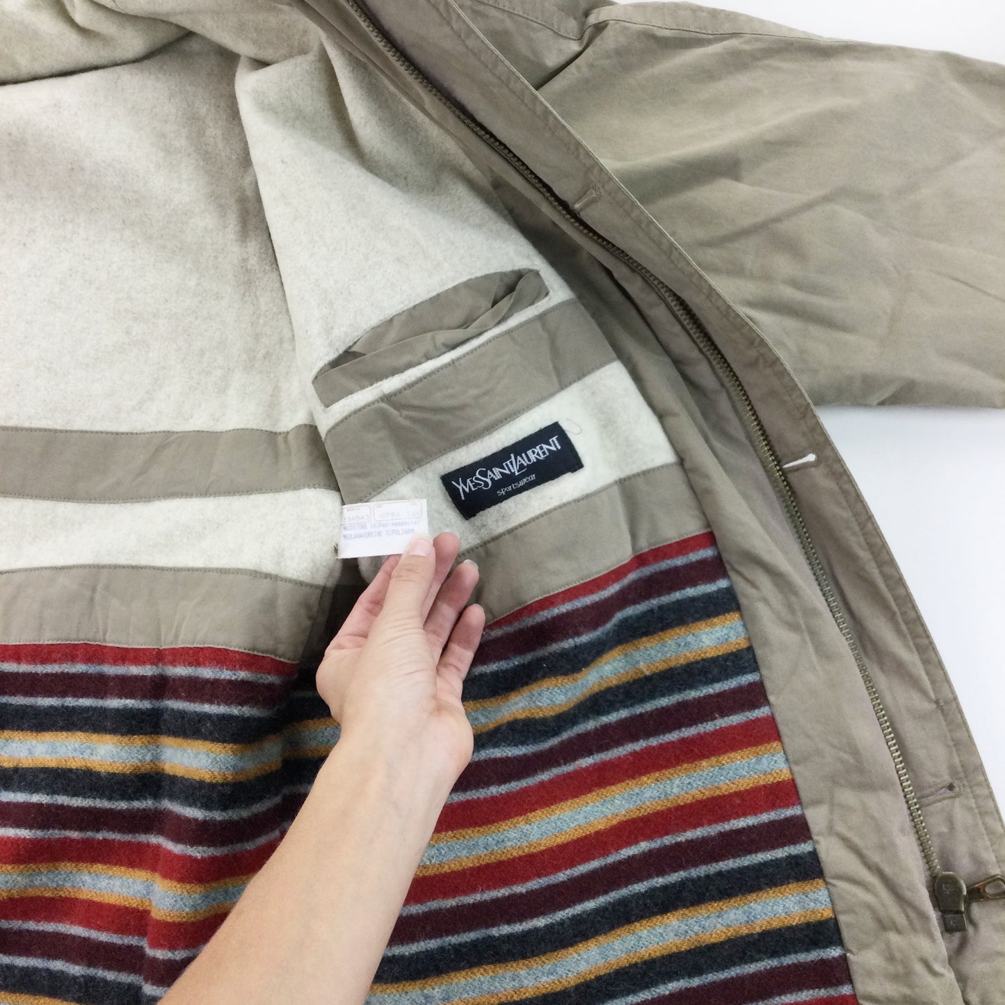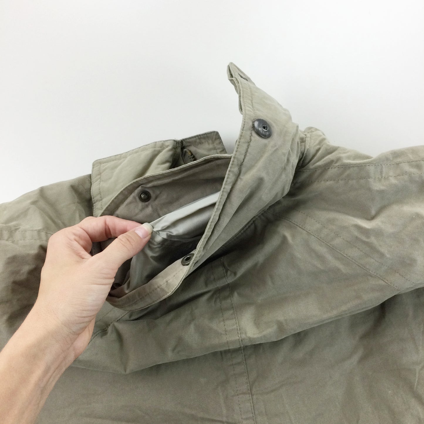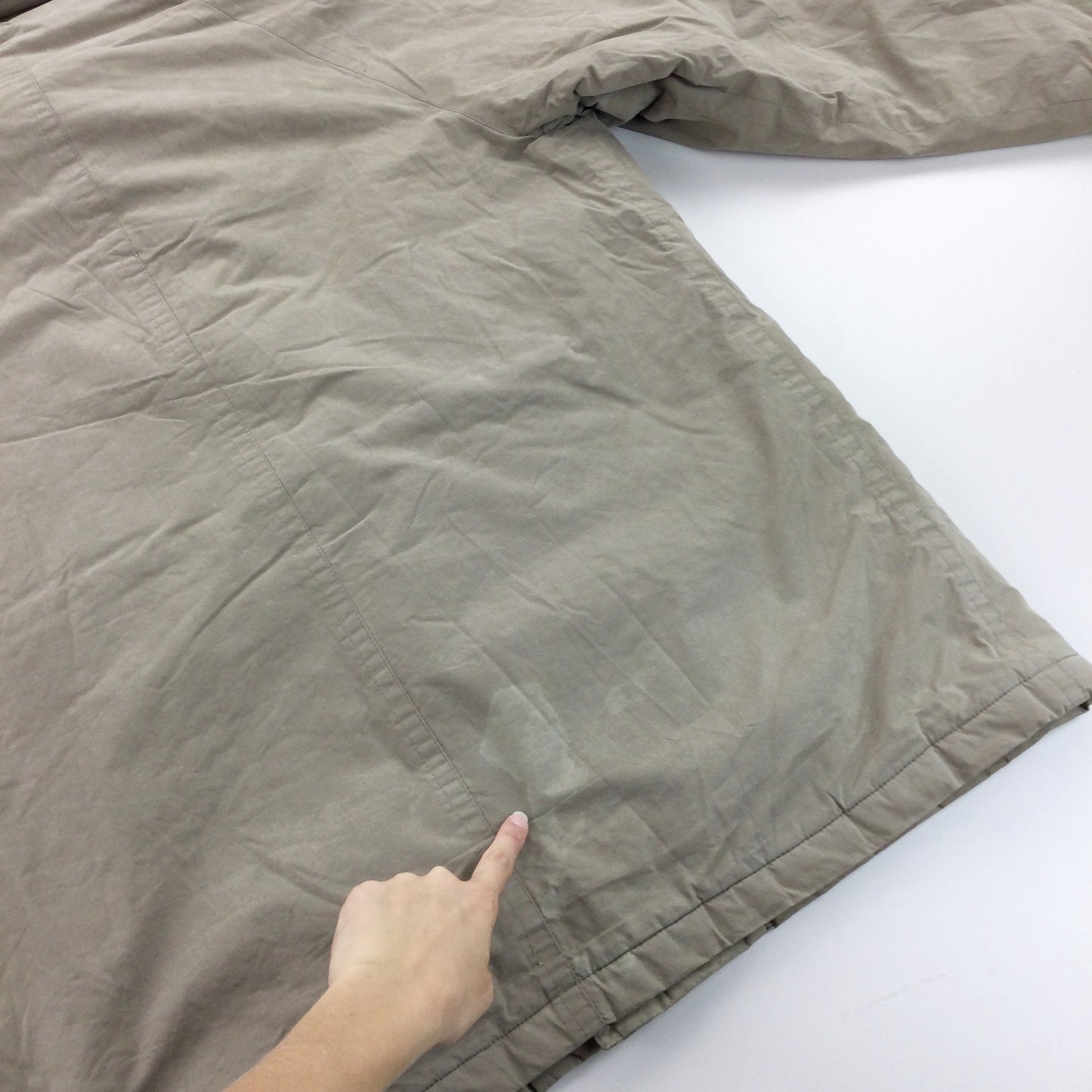 Infos: beige Farbe. Kein Logo draußen. integrierte Kapuze.